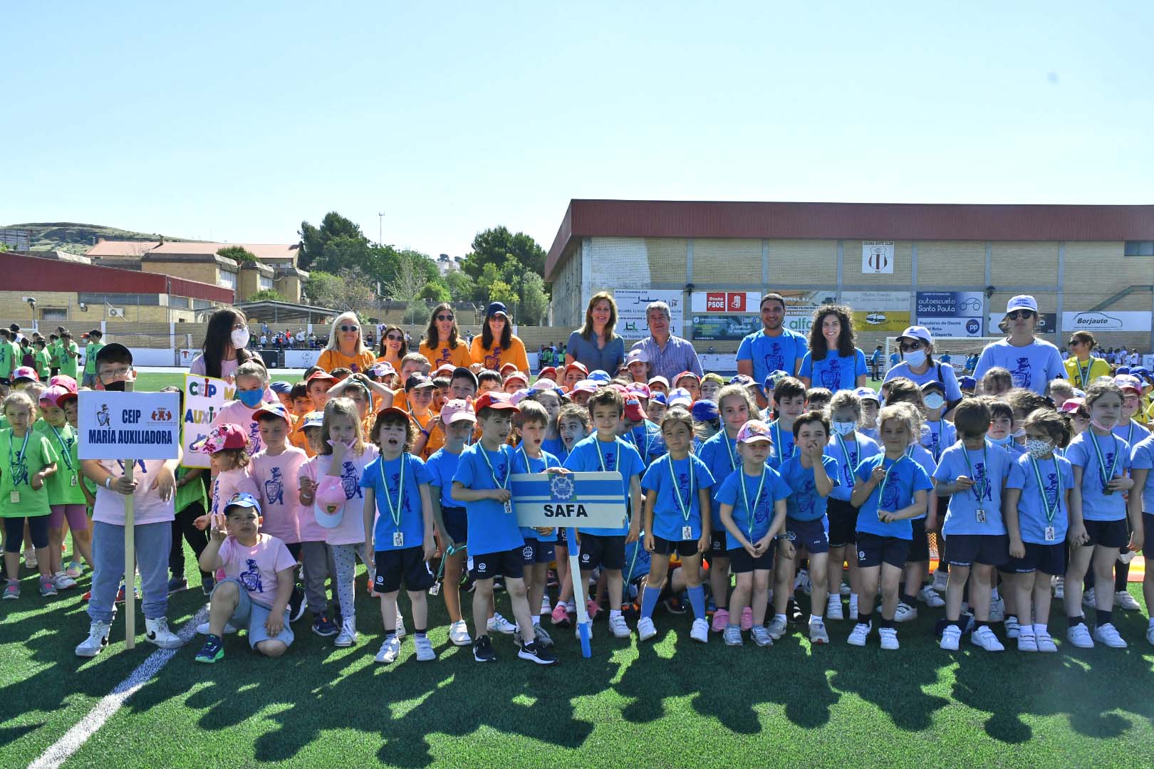 Como actividad deportiva previa a la feria de Osuna hoy, la alcaldesa de Osuna, Rosario Andújar, ha inaugurado hoy las XVIII Escuolimpiadas, en el estadio municipal Raúl Carroza, en la que participan 1500 alumnos y alumnas de Infantil, Primaria, Secundaria, quienes compiten en distintas actividades deportivas durante dos días.