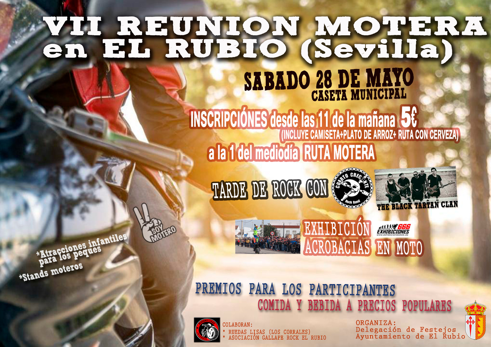 El sábado 28 de mayo no te puedes perder la VII REUNIÓN MOTERA que se realizará en la Caseta Municipal de EL RUBIO.
