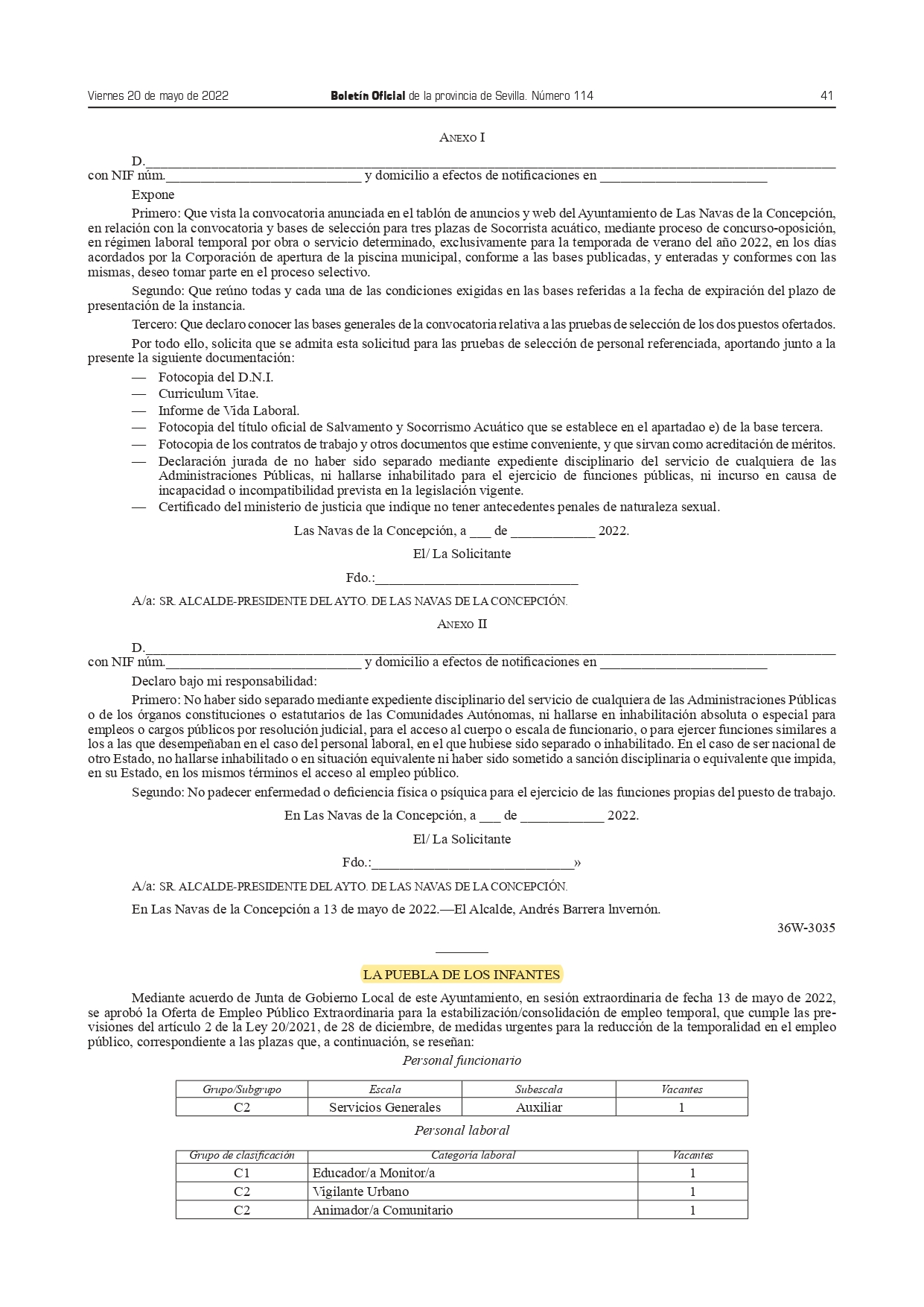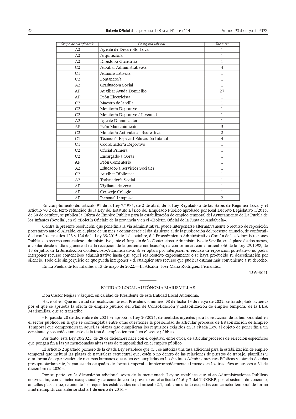 Imagen Imágenes Ubicación Categoría noticia Empleo Mostrar en el carrusel de la sección No Fecha Vie, 20/05/2022 - 09:31 Más información http://www.lapuebladelosinfantes.es/es/actualidad/noticias/Oferta-de-Empleo-Pub…