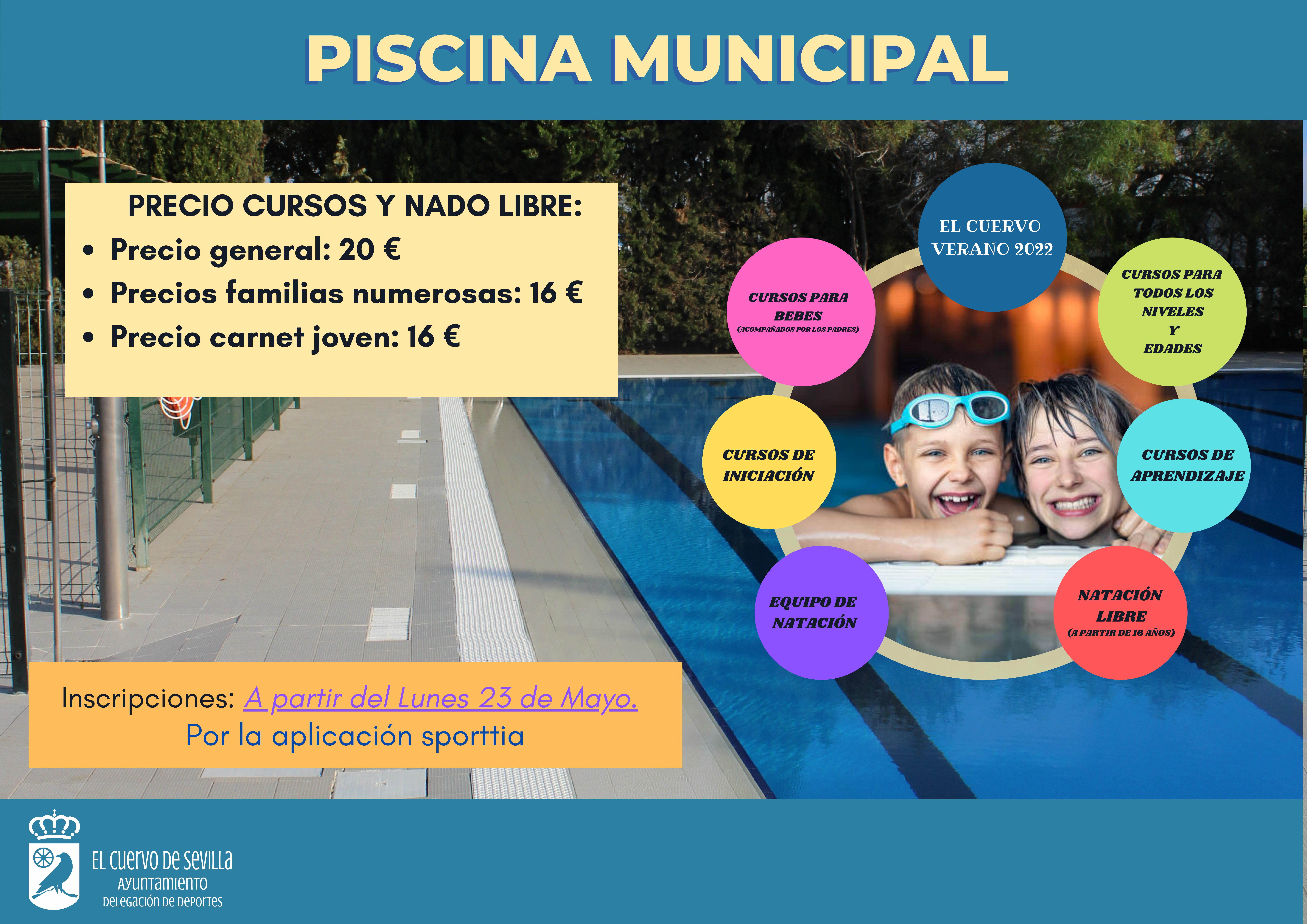 Desde hoy lunes 23 de mayo, la Delegación de Deportes abre el periodo de inscripciones para los cursos de natación de verano (meses de julio y agosto) en la Piscina Municipal de El Cuervo.