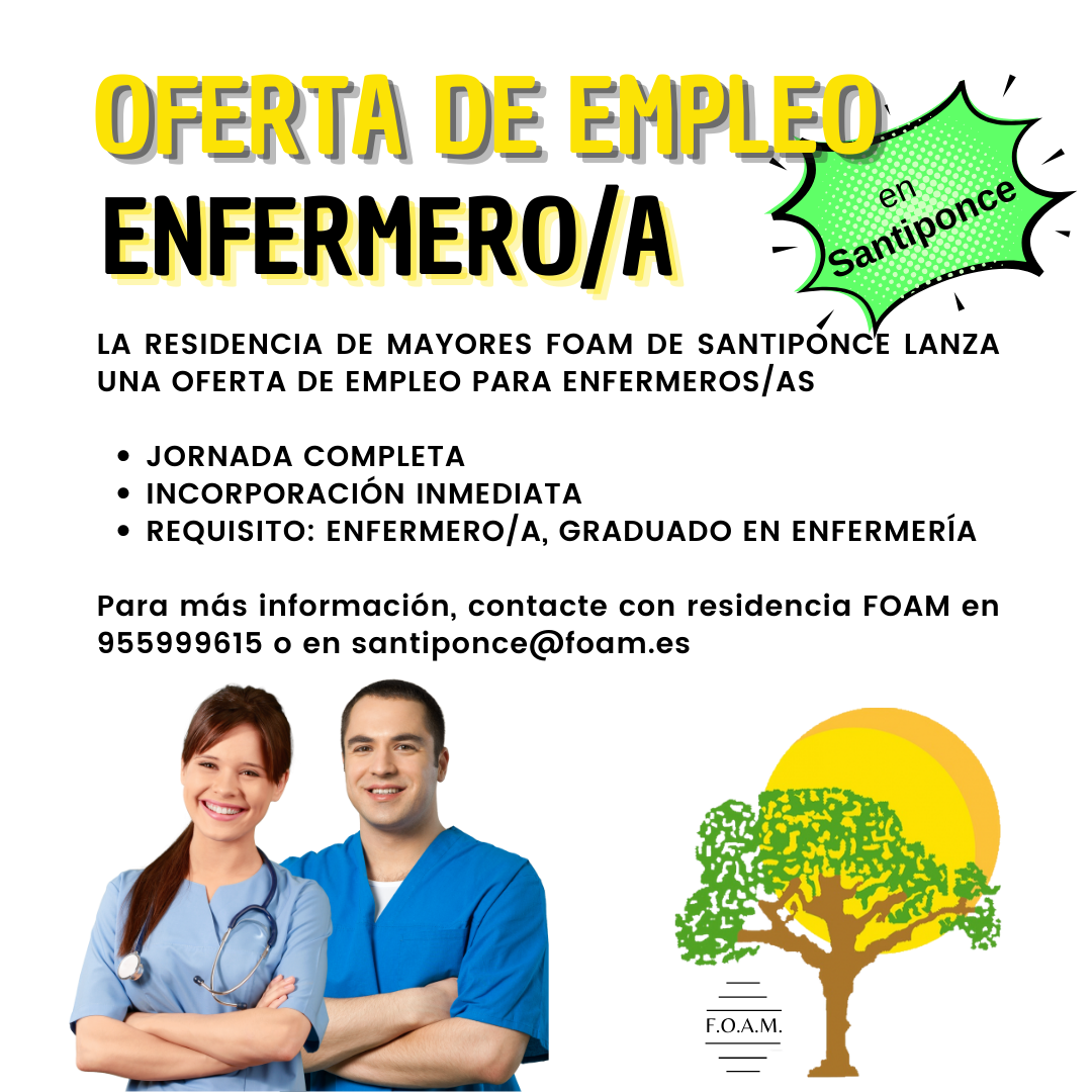 La Residencia de Mayores FOAM de Santiponce lanza una oferta de empleo para enfermeros/as