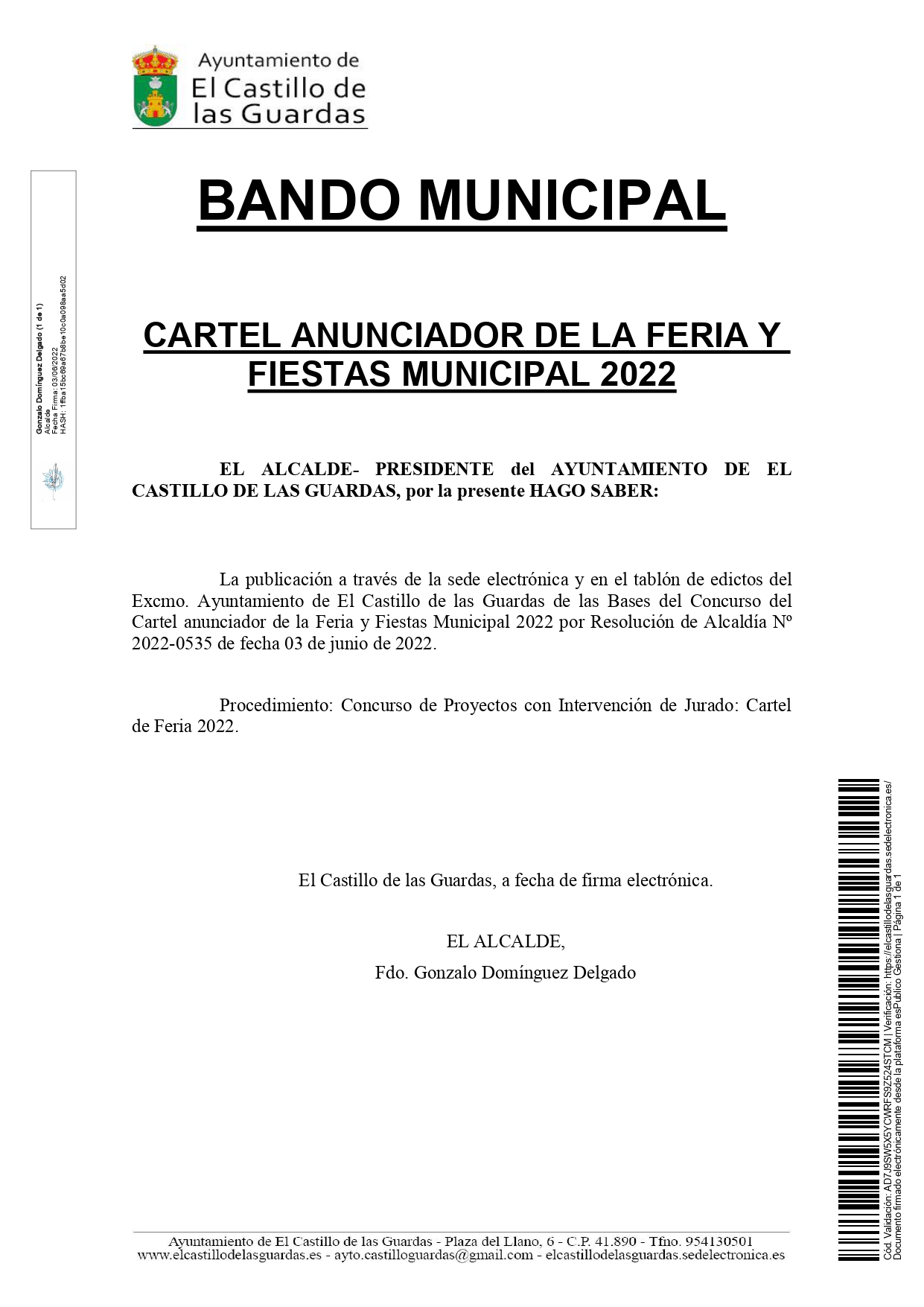 Se hace saber a toda la ciudadanía, que en el día de hoy han quedado publicadas las bases para que toda aquella persona que quiera participar en el concurso del próximo cartel anunciador de las Feria y Fiestas 2022 de El Castillo de las Guardas se puedan informar oficialmente.