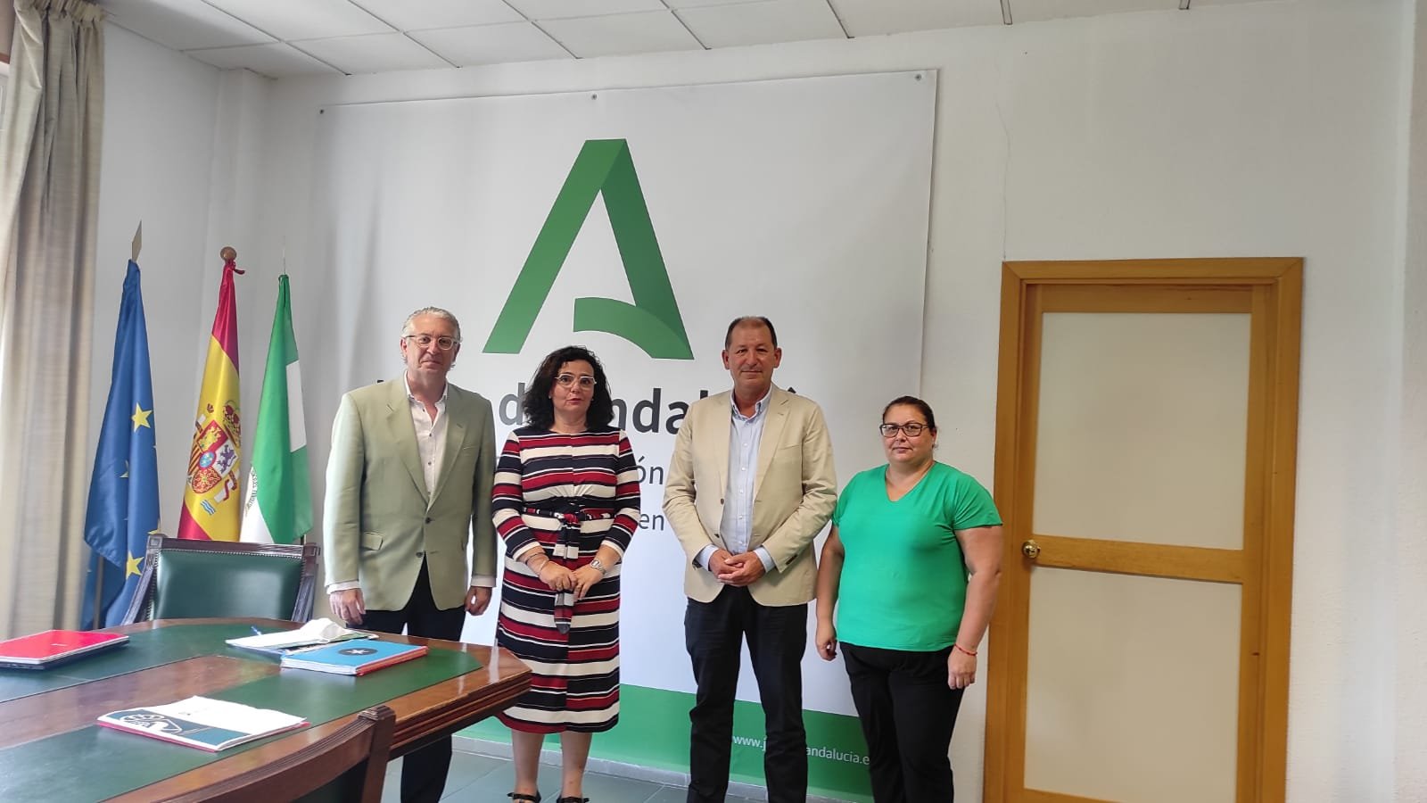 El alcalde Francisco J. Martínez y la delegada de Educación María del Mar Pérez Gil han mantenido esta mañana una reunión con la delegada territorial de Educación en Sevilla María José Eslava Nieto y Manuel Moreno Retortillo, gerente de la empresa APAE de educación en Sevilla.