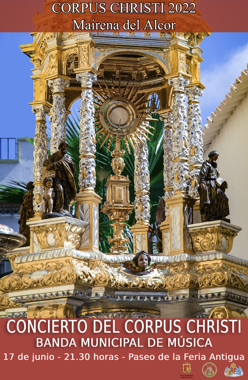 La Delegación de Cultura anuncia el tradicional concierto del Corpus Christi que ofrece la Banda Municipal de Música de Mairena del Alcor en vísperas de la festividad. Será el viernes 17 de junio a las 21.30 horas en el paseo de la Feria Antigua.