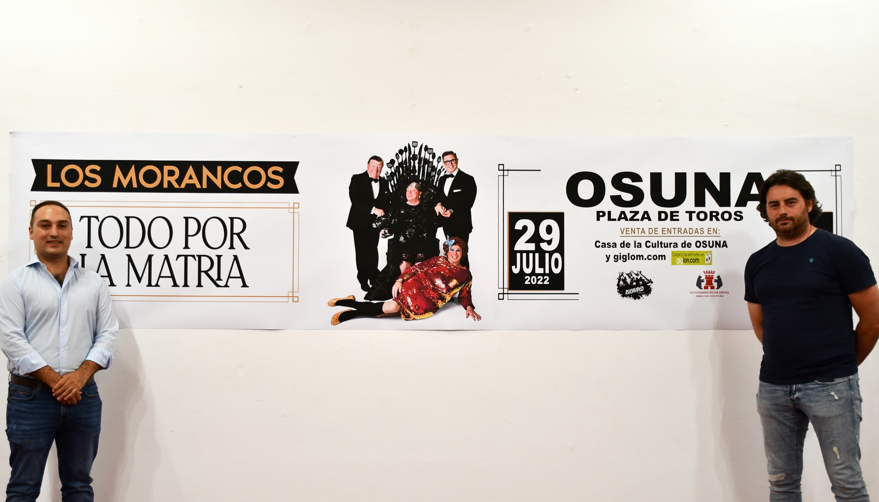 El delegado municipal de Cultura, Jesús Heredia, presentaba en la tarde de ayer miércoles, 8 de junio, el espectáculo de Los Morancos "Todo por la Matria", en un acto que tenía lugar en la Casa de la Cultura y en el que estuvo acompañado por el representante de este dúo humorístico, José García.