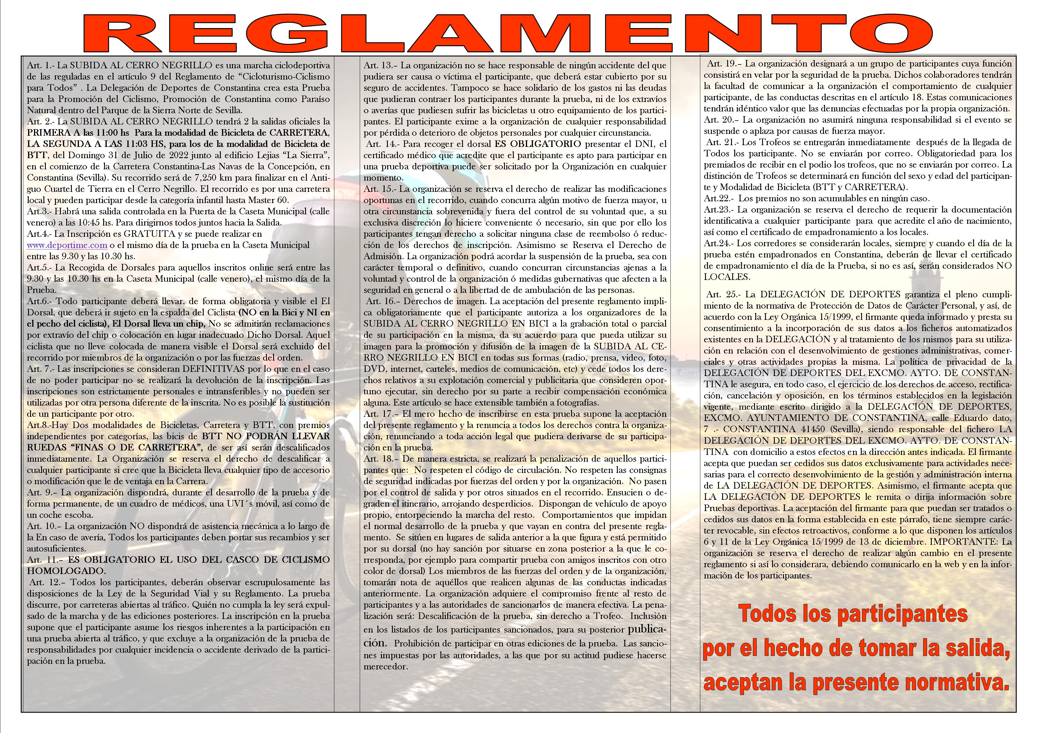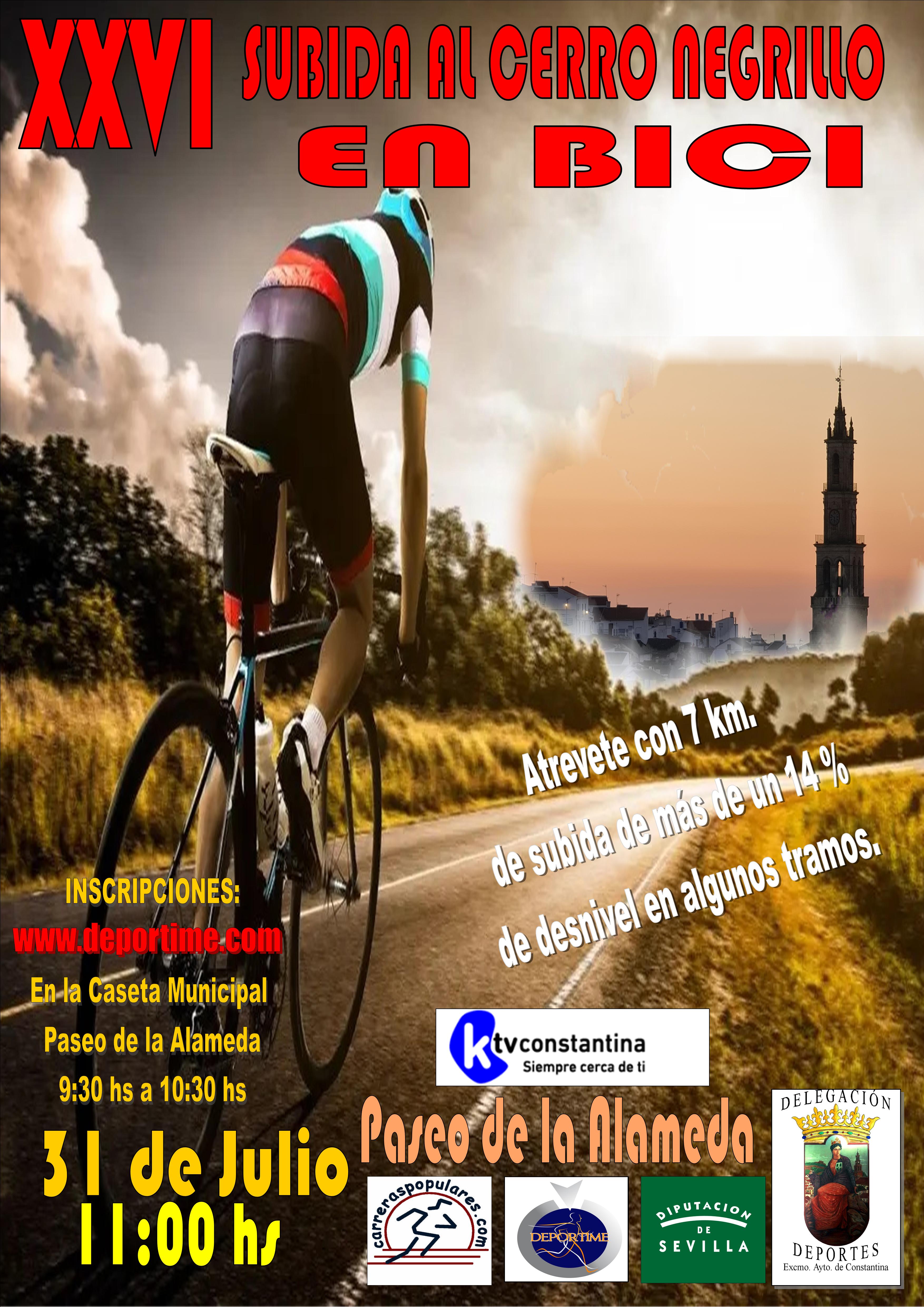 El próximo domingo 31 de julio tendrá lugar, a las 11:00 horas, la XXVI Subida al Cerro Negrillo en Bicicleta, organizada por la Delegación de Deportes del Ayuntamiento de Constantina en colaboración con la Diputación de Sevilla.