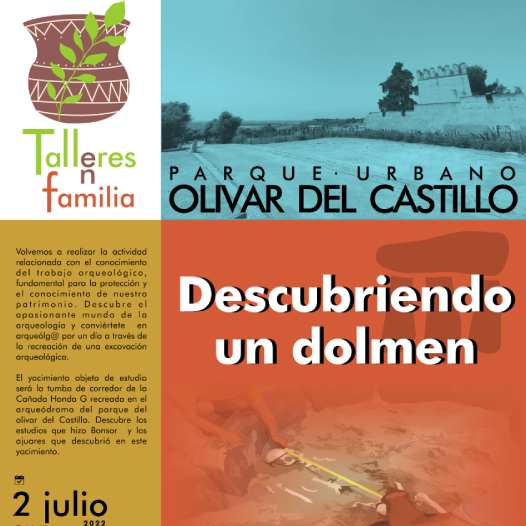 Ya está abierta la inscripción al próximo taller en familia, Descubriendo un Dolmen, que tendrá lugar el sábado 2 de julio a las 10.30 horas, en el arqueódromo del Parque Urbano Olivar del Castillo (C/ Real, 22). Esta actividad de 90 minutos de duración va dirigida a un público familiar de 4 a 12 años de edad.