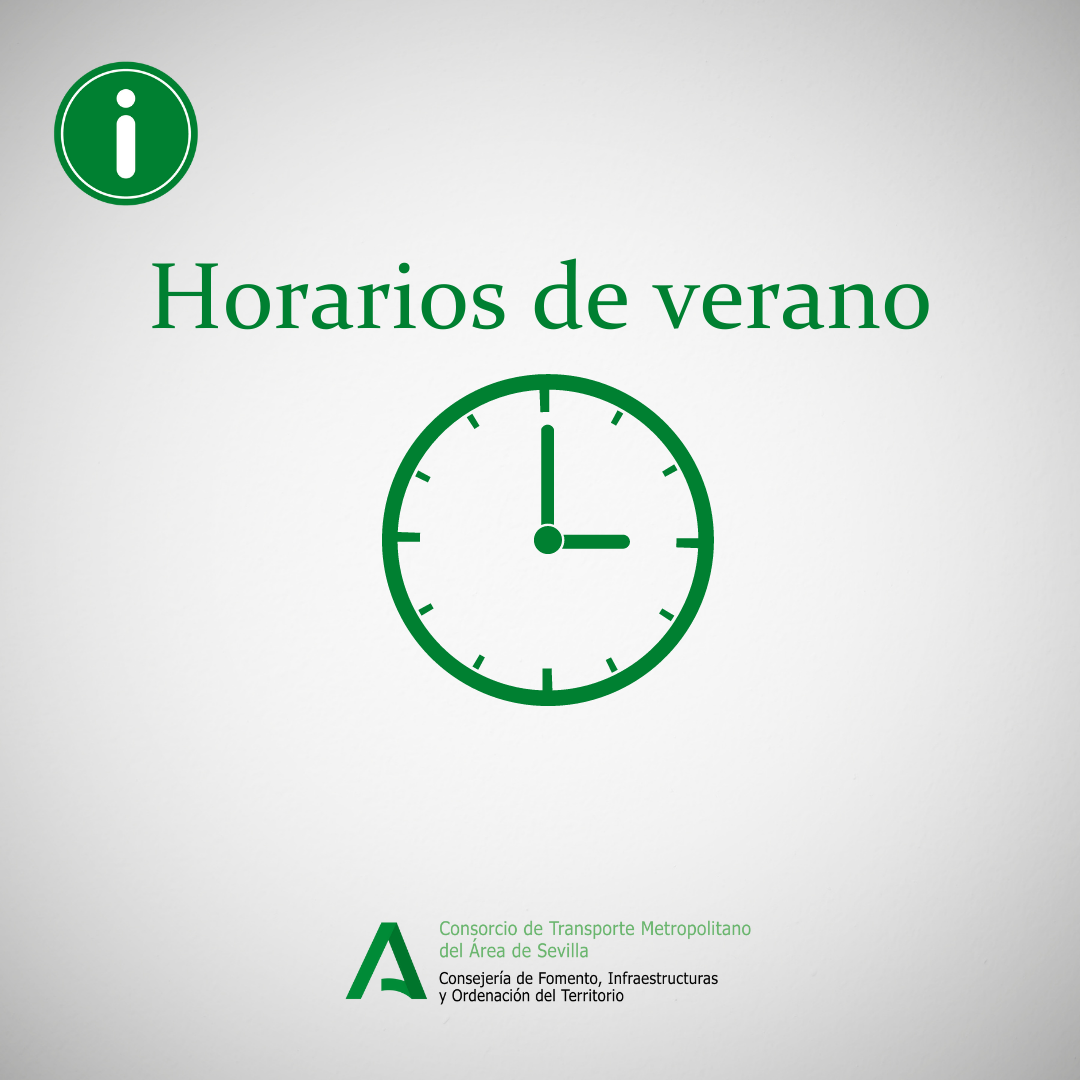 El Consorcio de Transporte Metropolitano del Área de Sevilla informa que desde el 1 de julio y hasta el 31 de agosto, estará en vigor el horario de verano en las líneas de autobuses metropolitanos.