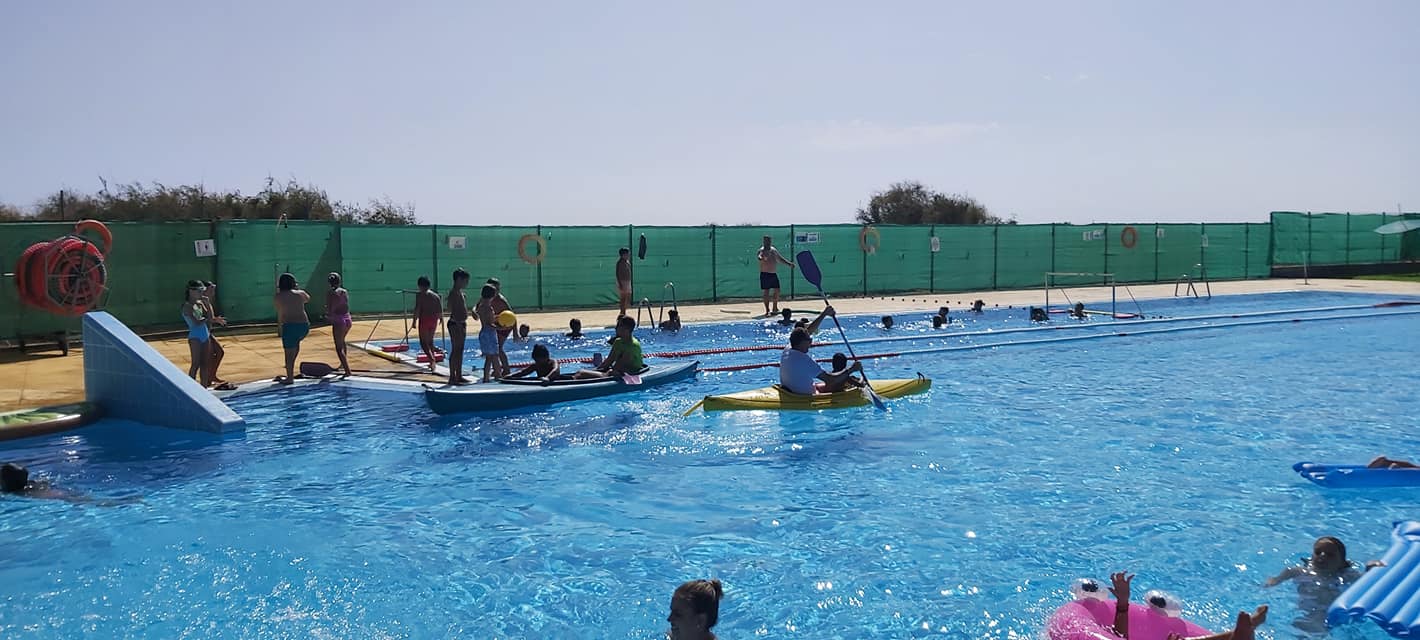 Los niños de la Escuela de Verano disfrutaron ayer de una fiesta acuática que hizo las delicias de todos ellos: waterpolo, escurridor, canoas, hinchables, música, ..Una divertida fiesta para celebrar un verano lleno de actividades en una escuela de verano que pondrá punto y final el próximo martes día 31 después de un año de ausencia.