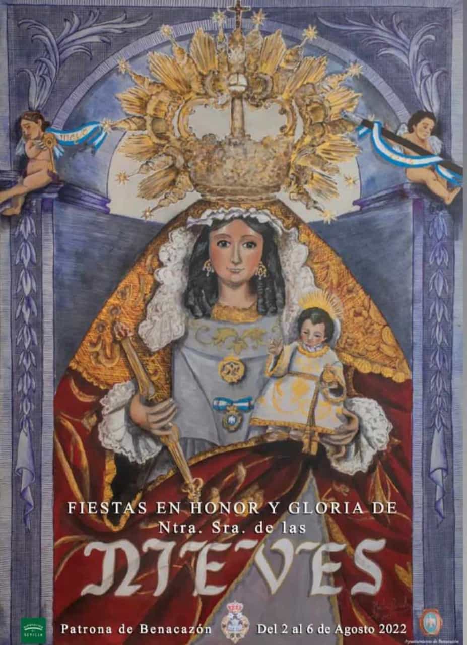 Las Fiestas Patronales de Benacazón, en Honor a la Virgen de las Nieves, se celebran del 2 al 6 de Agosto de 2022, contando en su programación de Cultos y Festejos con diferentes acto y actividades lúdicas, deportivas, festivas, culturales y religiosas. Nuestras Fiestas de Las Nieves contienen grandes atractivos que la diferencian de otras fiestas de la provincia, como es la decoración efímera de coloridos arcos elaborada por los vecinos de las calles por las que procesiona nuestra Patrona la Virgen de las Nieves.