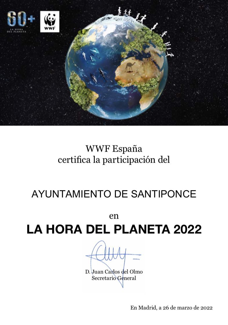 El pueblo de Santiponce, ha recibido la certificación del Fondo Mundial para la Naturaleza (WWF), la organización no gubernamental fundada en 1961 para la conservación del medio ambiente, por su participación en la 'La Hora del Planeta'. El Ayuntamiento de Santiponce se sumó a la campaña internacional 'La hora del planeta", por el ahorro de energía para la defensa del medio ambiente con el apagado simbólico el 26 de marzo durante una hora, entre las 20:30 y las 21:30 horas, la iluminación exterior del Ayuntamiento y de los edificios municpales.