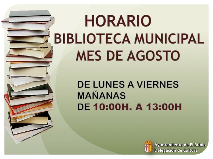 Imagen Ubicación Categoría noticia Cultura Mostrar en el carrusel de la sección No Fecha Mié, 24/08/2022 - 11:33 Más información http://www.elrubio.es/es/actualidad/noticias/HORARIO-BIBLIOTECA-MUNICIPAL-DURAN…