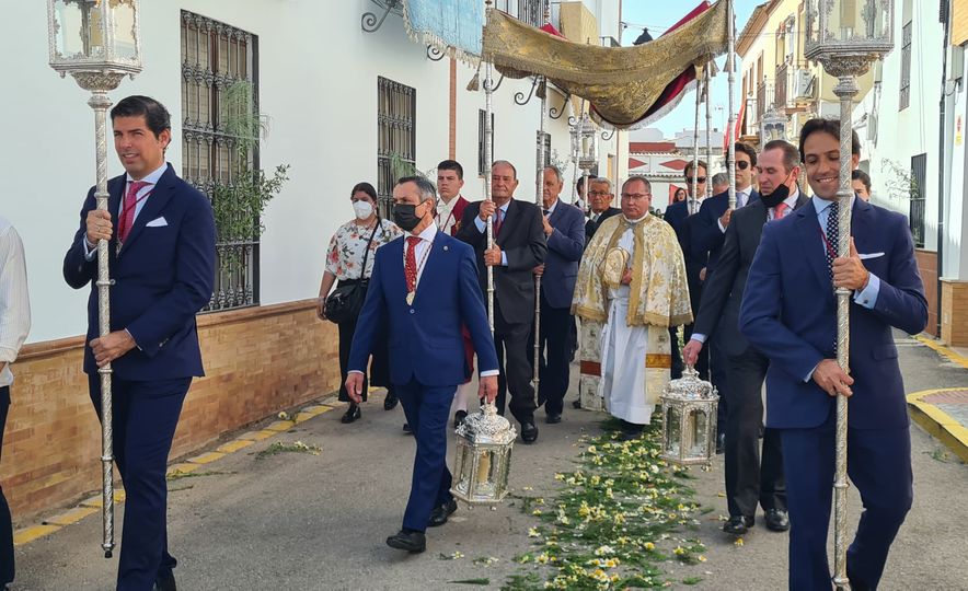 En la mañana de hoy nuestro alcalde, Martín Torres Castro, con una amplia representación de la Corporación Municipal, ha acompañado al Santísimo por las calles de nuestro pueblo en la Procesión de Su Majestad, para llevar la Comunión a los enfermos e impedidos de nuestro pueblo.