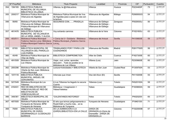 En esta edición 2022 se han otorgado 370 premios, entre los que se encuentra nuestra localidad que ha sido premiada por su proyecto " Cerca de ti, Solidaria" y el premio consiste en 2777.77€ para la compra de libros para nuestra Biblioteca Municipal.