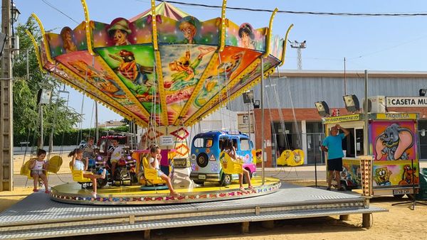 Esta mañana, y como ya ocurriera el año pasado, los niños y niñas de la Escuela de Verano han disfrutado un ratito en las atracciones montadas en el campo de feria con motivo de nuestras Fiestas Patronales.