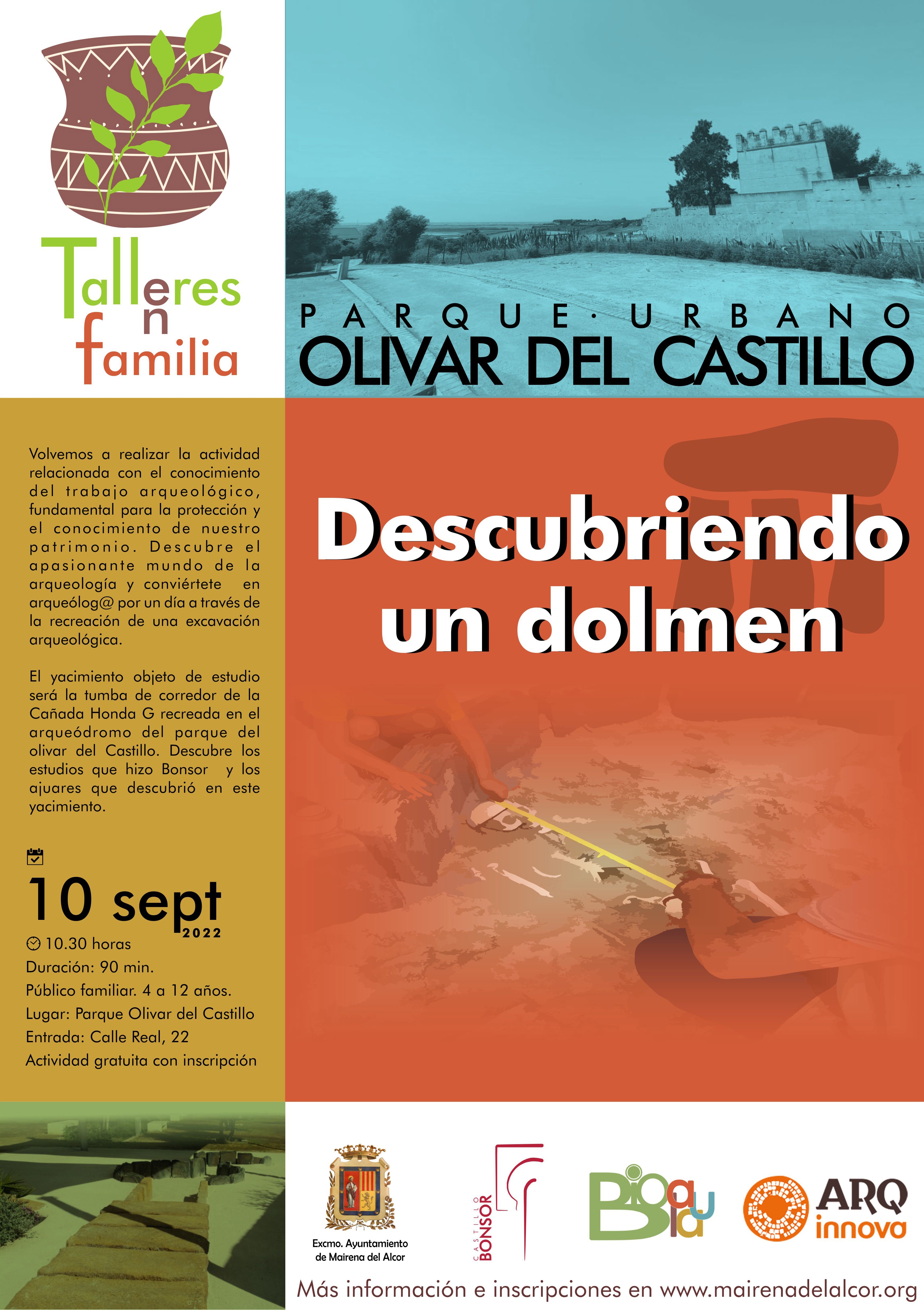 Ya está abierta la inscripción al próximo taller en familia, Descubriendo un Dolmen, que tendrá lugar el sábado 10 de septiembre a las 10.30 horas, en el arqueódromo del Parque Urbano Olivar del Castillo (C/ Real, 22). Esta actividad de 90 minutos de duración va dirigida a un público familiar de 4 a 12 años de edad.