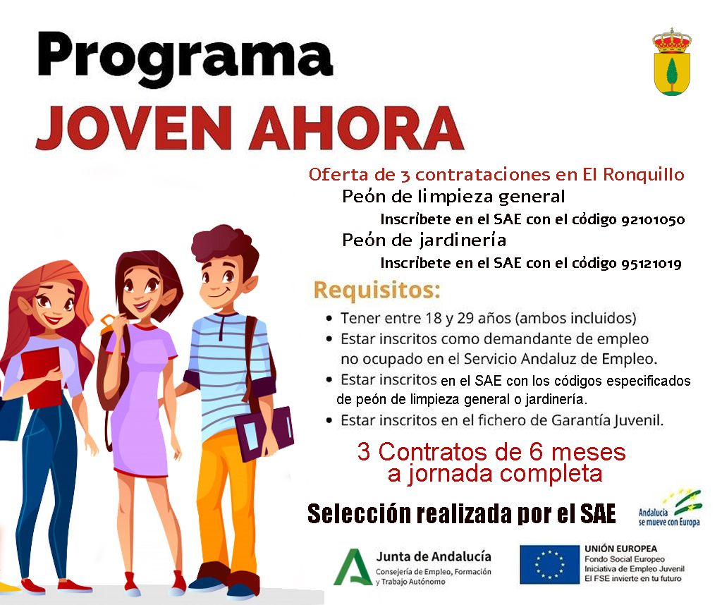 Próximamente se va a desarrollar en El Ronquillo el programa Joven Ahora, a través de la subvención para la Promoción del empleo juvenil de la Consejería de Empleo, Formación y Trabajo Autónomo.