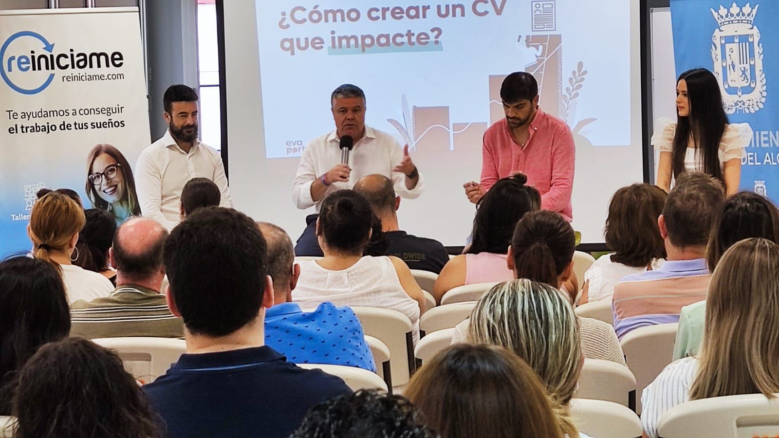 El alcalde de Mairena del Alcor, Juanma López, y el delegado de Emprendimiento, Santiago Mauri, dieron ayer el pistoletazo de salida a Reiníciame junto al empresario Rafael Casal y la influencer en empleabilidad Eva Porto. El encuentro de bienvenida tuvo lugar ayer martes por la tarde en el Edificio Impúlsame.