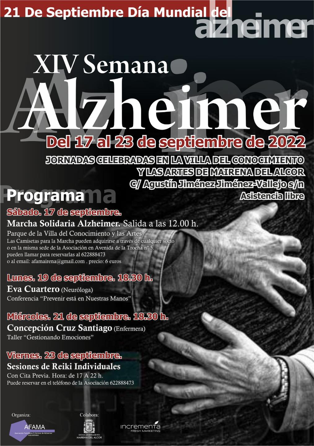 El Ayuntamiento de Mairena del Alcor, a través de la Delegación de Sanidad, colabora con la XIV Semana del Alzheimer que organiza la asociación Afama tras el parón provocado por el Covid-19. El delegado de Sanidad, Alejandro Cruz, invita a participar a todos los vecinos y vecinas "haciendo visible la prevención esta enfermedad que se asoma a muchos hogares".