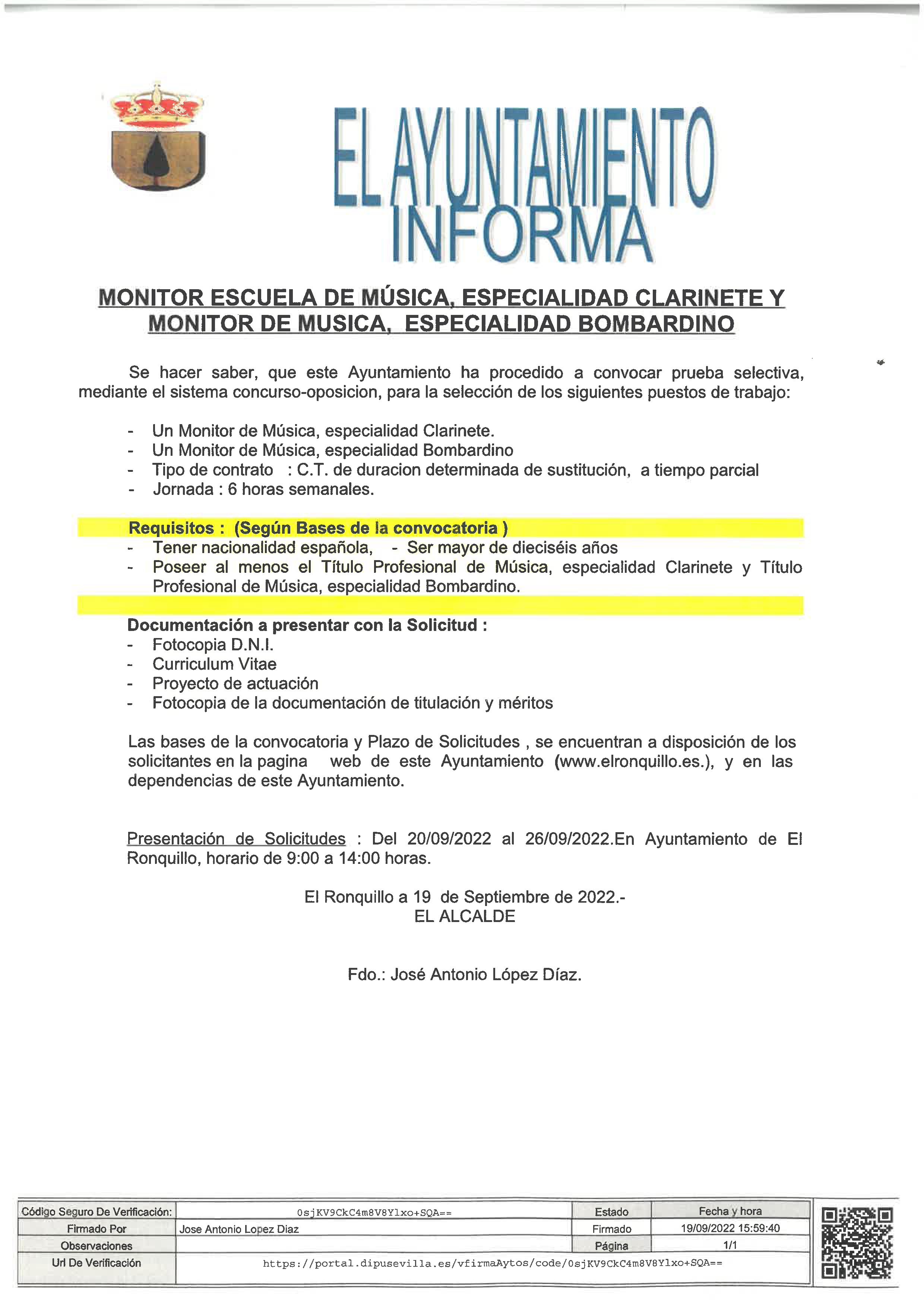 - MONITOR ESCUELA DE MÚSICA, ESPECIALIDAD BOMBARDINO