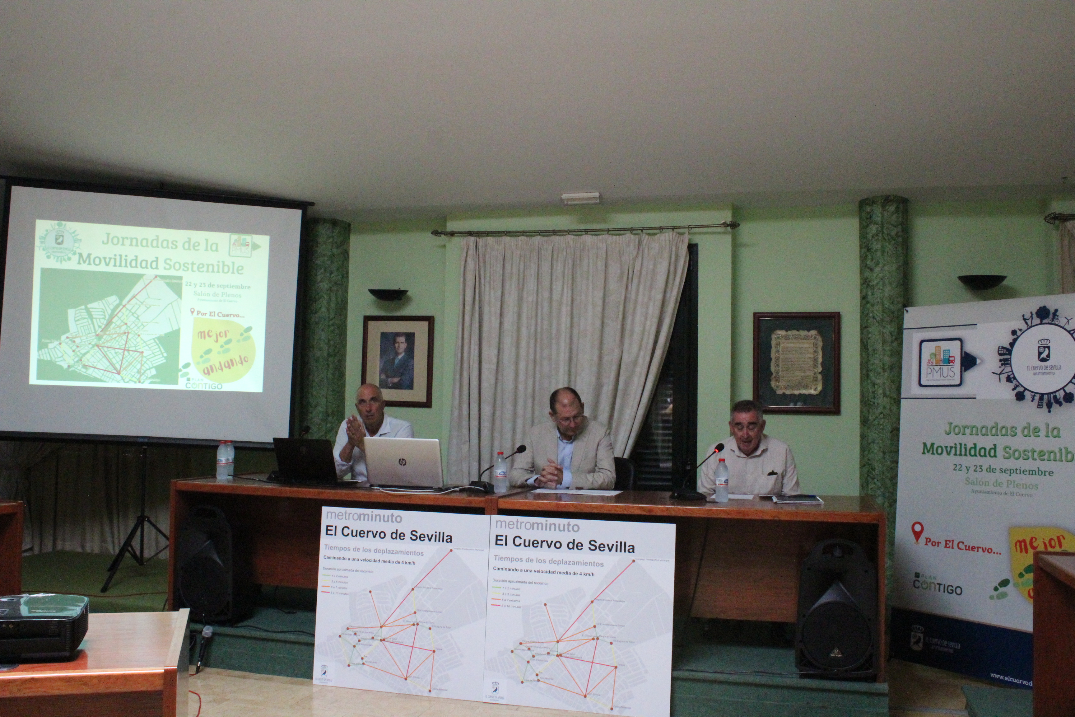 En la jornada intervino el Jefe de la Policía Local, Miguel Ángel Romero Rueda, que expuso el proyecto de implantación vial en los centros escolares, además de presentarse por el equipo de Indalecio de La Lastra el resultado de las encuestas realizadas por la población y el mapa de 'Metrominuto' de El Cuervo. Un mapa que contabiliza en minutos, los tiempos de desplazamientos que se tardan entre trayectos en el pueblo caminando a una velocidad media de 4km/h.