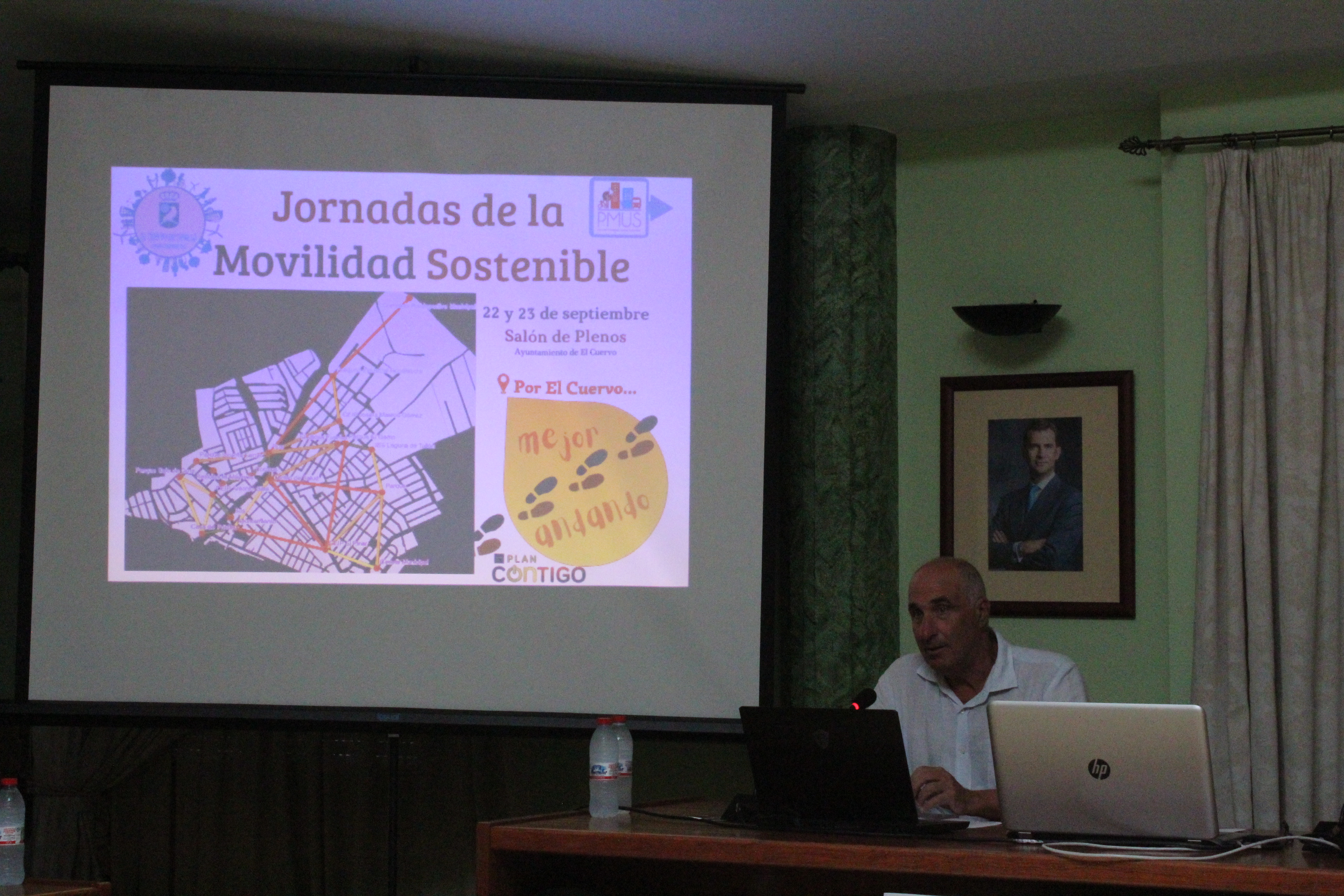 Por El Cuervo… ¡Mejor andando! Este ha sido el lema central de las Jornadas de la Movilidad Sostenible inauguradas esta mañana en el municipio con motivo de la Semana Europea de la Movilidad. Unas jornadas públicas y participativas, inauguradas por el Alcalde Francisco J. Martínez que han servido para presentar el primer diagnóstico "Plan de Movilidad Urbana y Accesibilidad" que se viene desarrollando desde hace meses bajo la dirección de Indalecio de la Lastra, ingeniero de Caminos especialista en el desarrollo e implementación de Planes de Movilidad en otras ciudades de España.