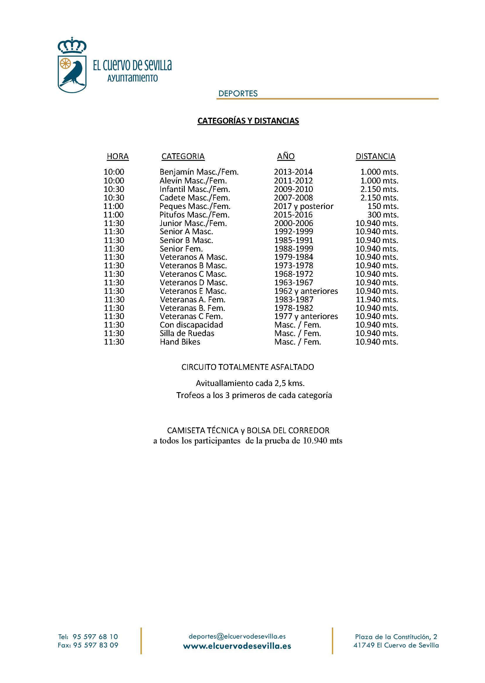 3.- Las categorías y distancias de la prueba serán las que se indican al final de este reglamento.