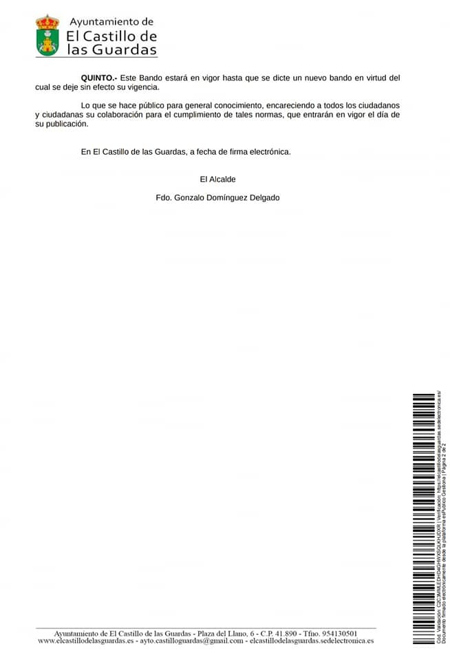 Adjuntamos BANDO con toda la información sobre medidas y prohibiciones.