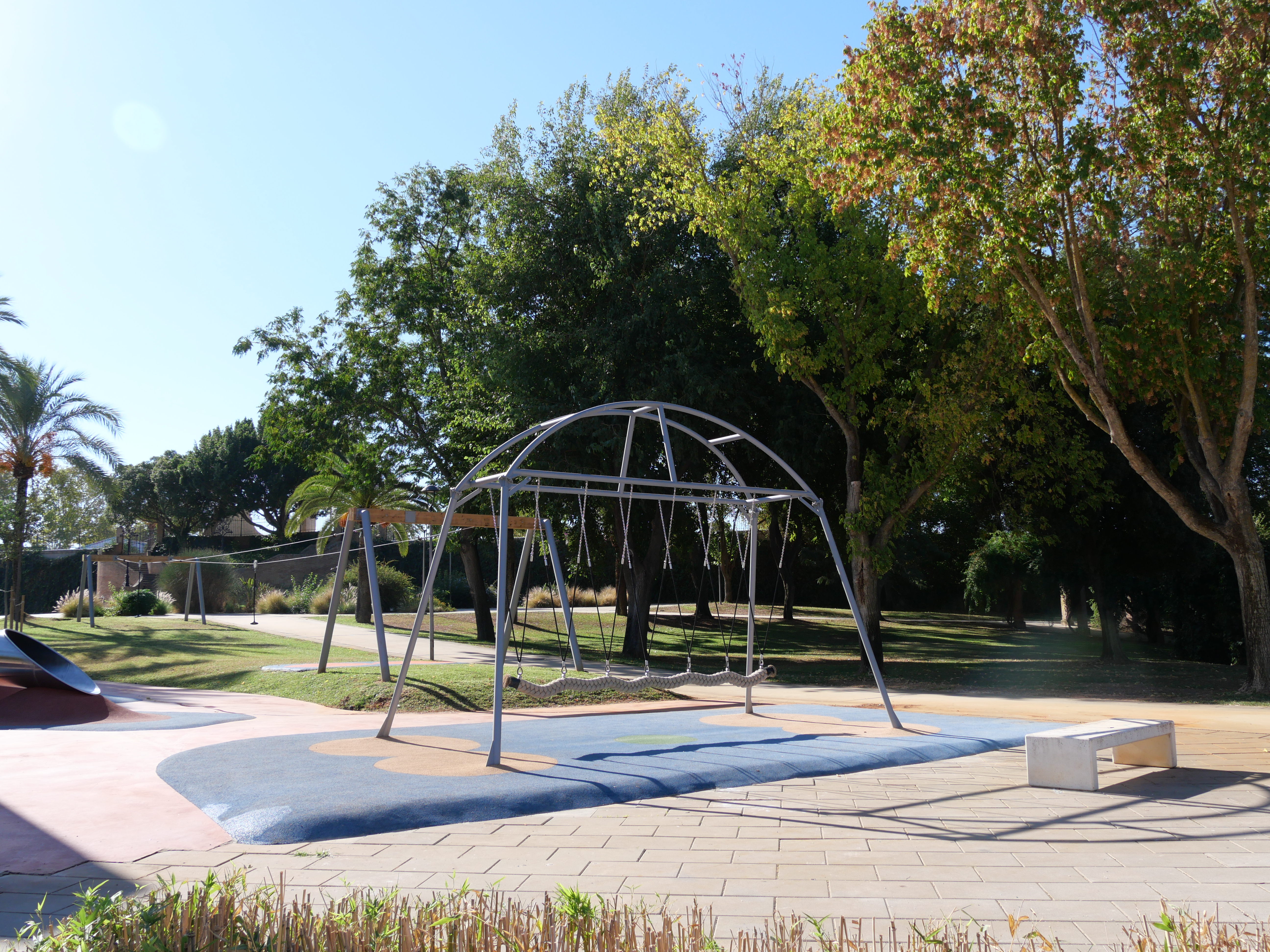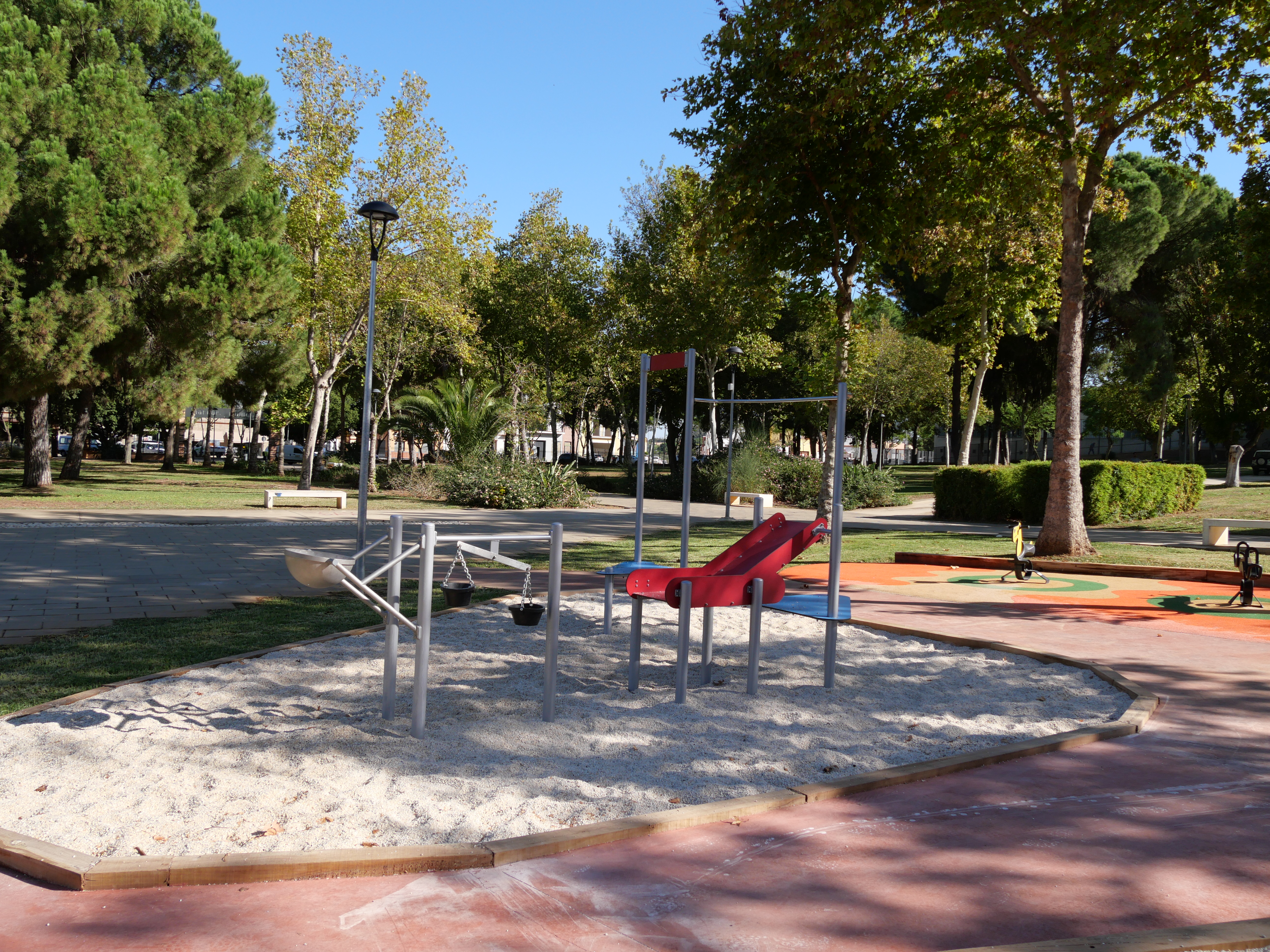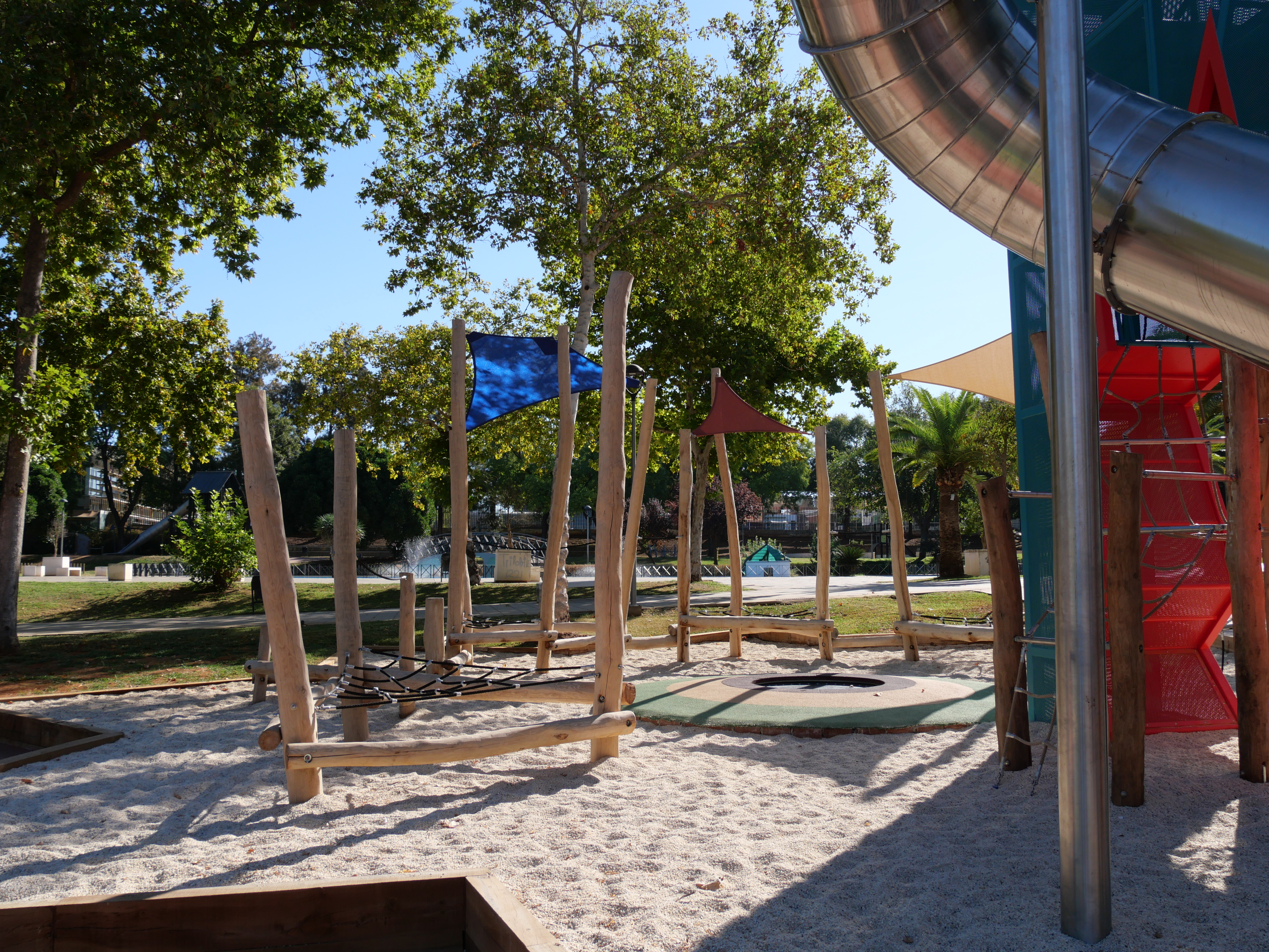 Un tobogán de 9,5 metros, uno de los más altos de la provincia, destaca en esta nueva área que complementa los juegos existentes. Un balancín, un juego de arena, un columpio axial, una cama elástica y una tirolina doble conforman el nuevo espacio.