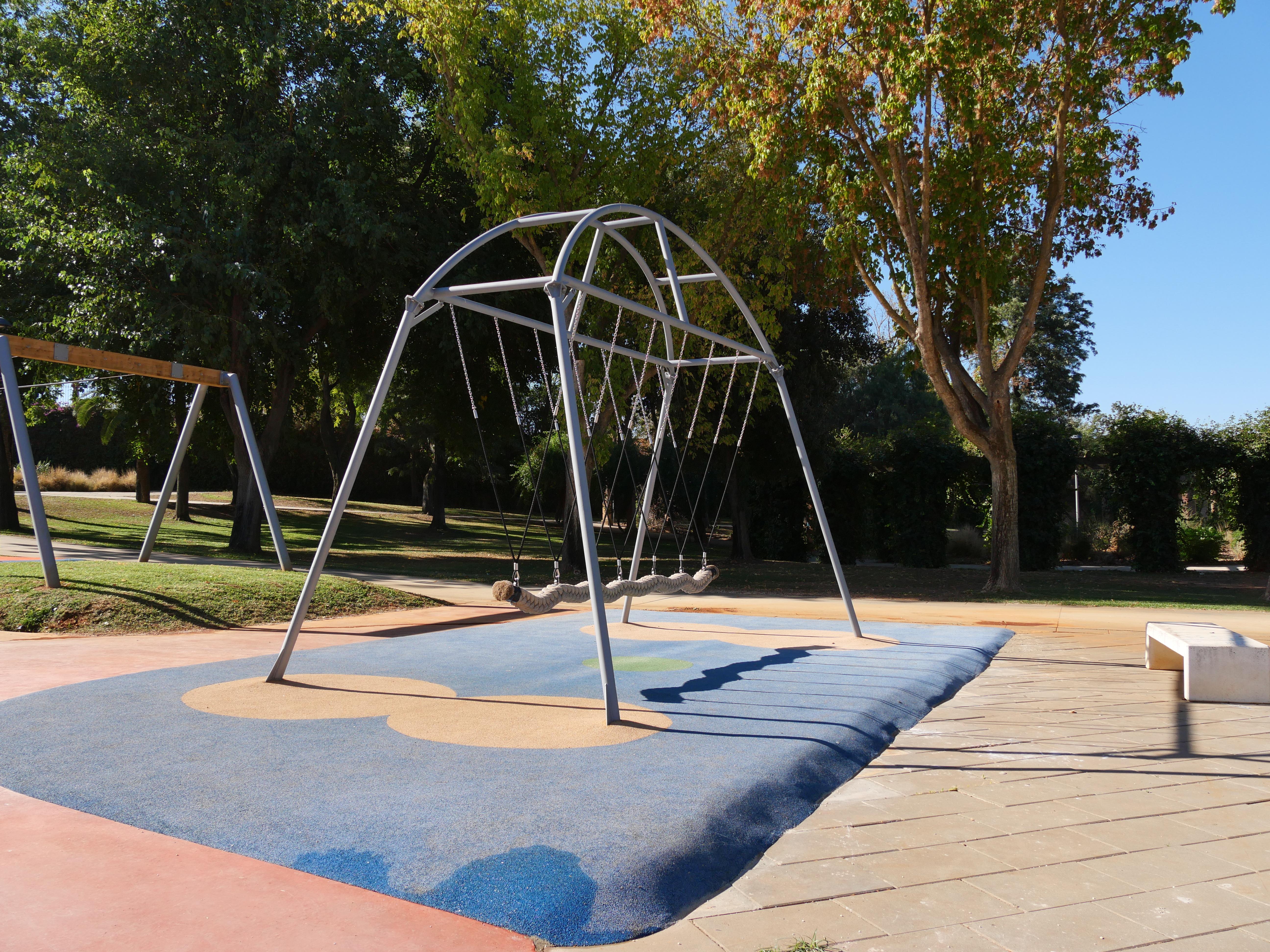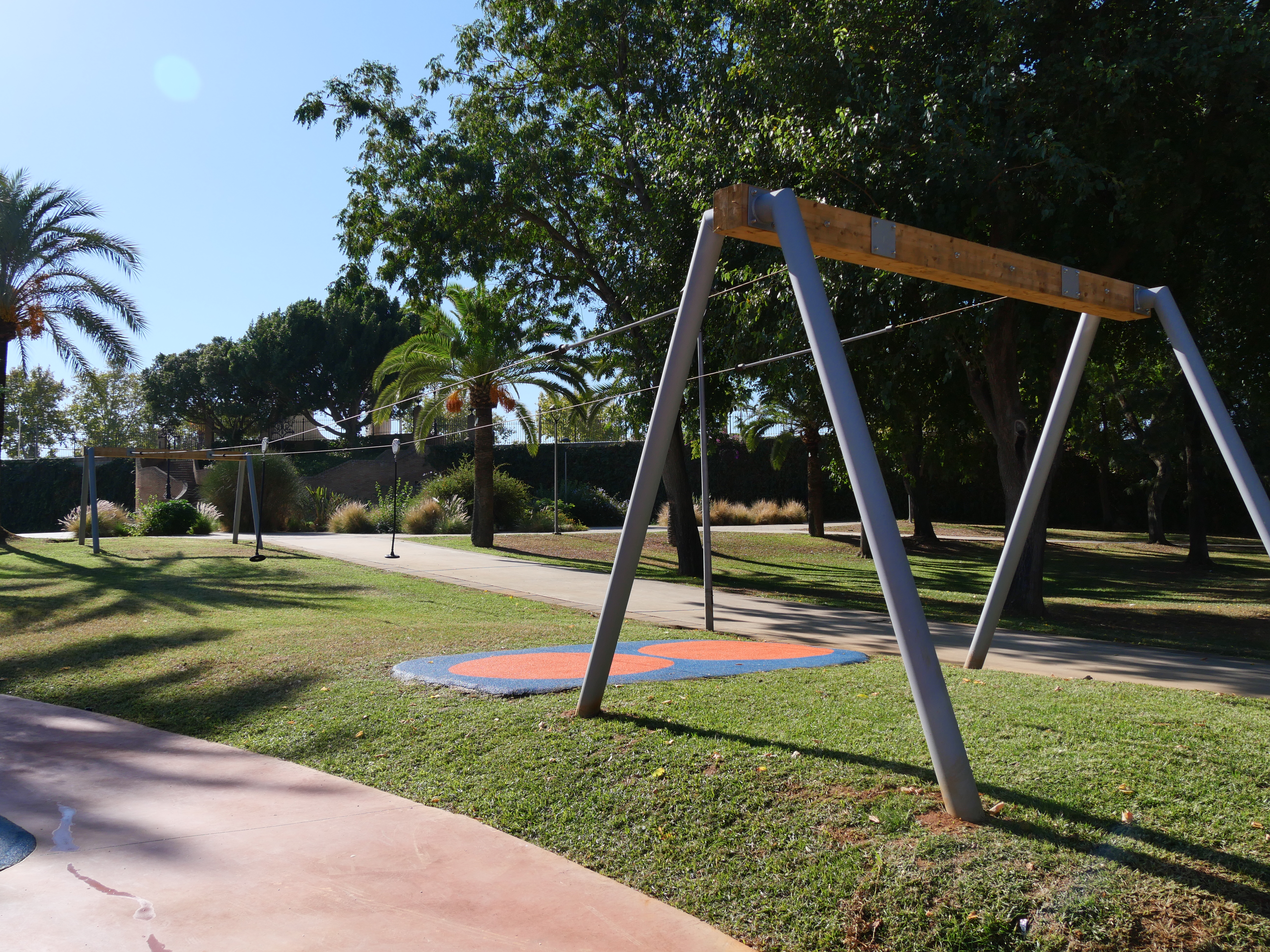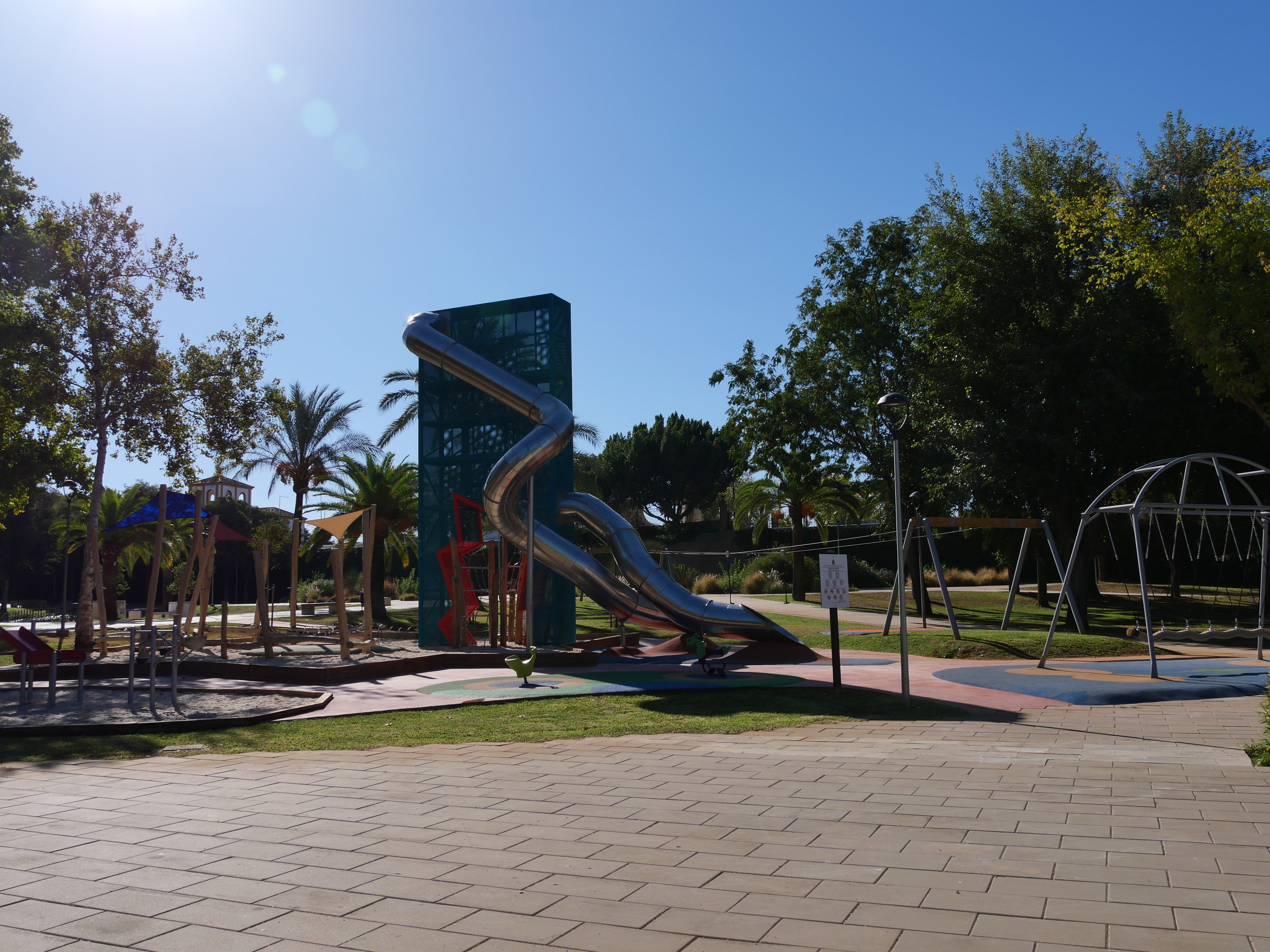 Un tobogán de 9,5 metros, uno de los más altos de la provincia, destaca en esta nueva área que complementa los juegos existentes. Un balancín, un juego de arena, un columpio axial, una cama elástica y una tirolina doble conforman el nuevo espacio.